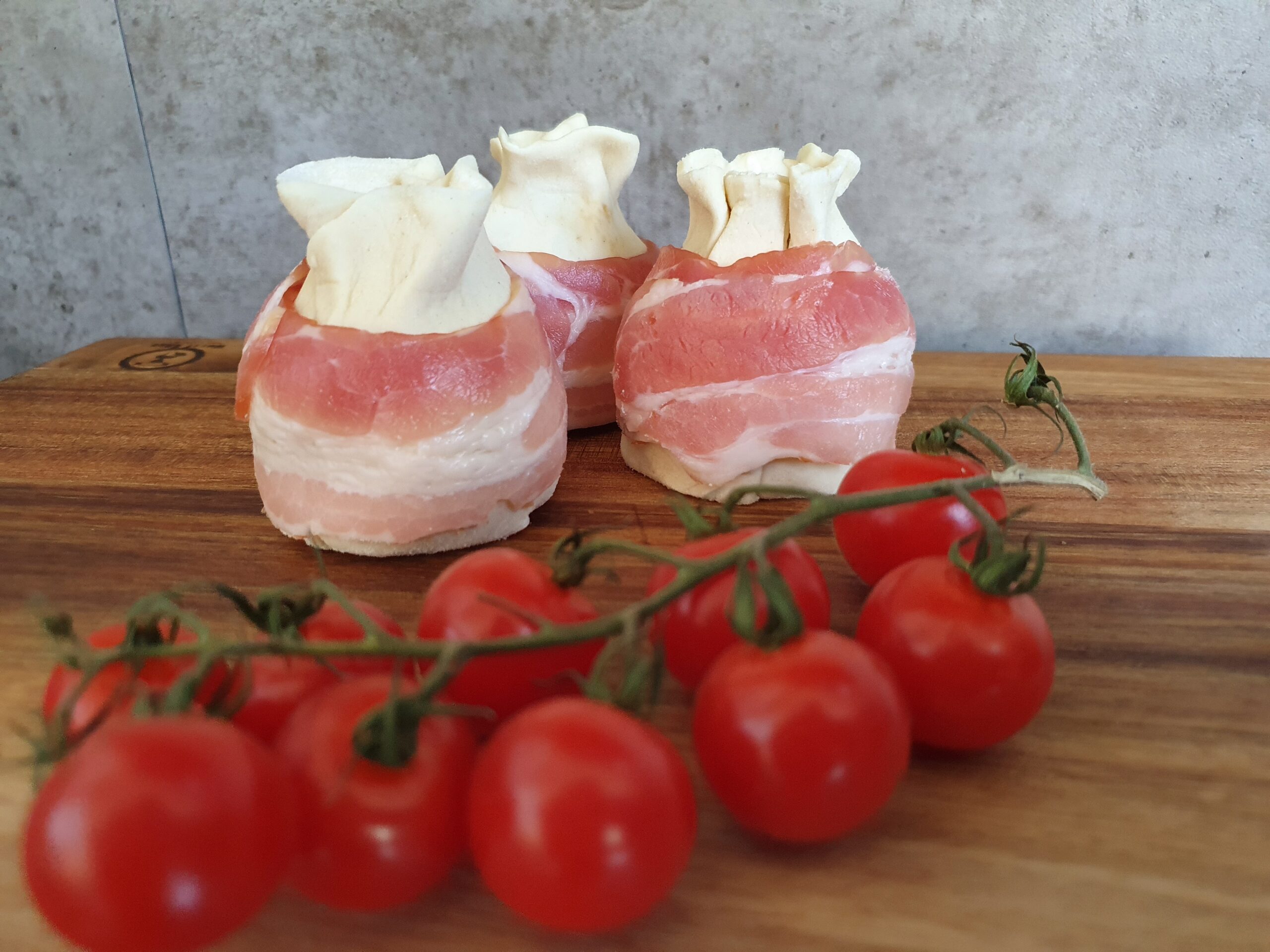 Maak de tulpenbol af door een plak bacon om het dikke gedeelte van de bol te wikkelen.